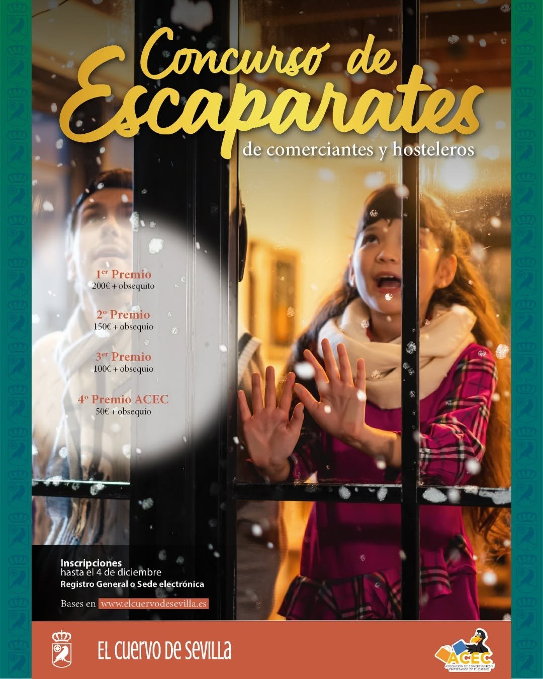 El Ayuntamiento de El Cuervo de Sevilla ha aprobado la convocatoria y las bases del Concurso de Escaparates Navideños mediante Resolución 1834/2025, firmada el 5 de noviembre de 2025.