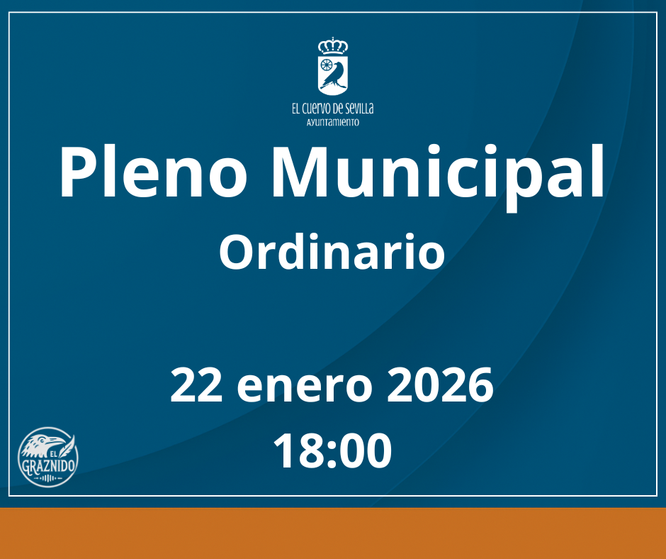 El Ayuntamiento de El Cuervo de Sevilla ha convocado un pleno ordinario para el próximo 22 de enero de 2026, a las 18:00 horas, que se celebrará en el Salón de Plenos municipal. La convocatoria fue acordada mediante resolución de Alcaldía de fecha 19 de enero, en cumplimiento de la normativa reguladora del régimen local .