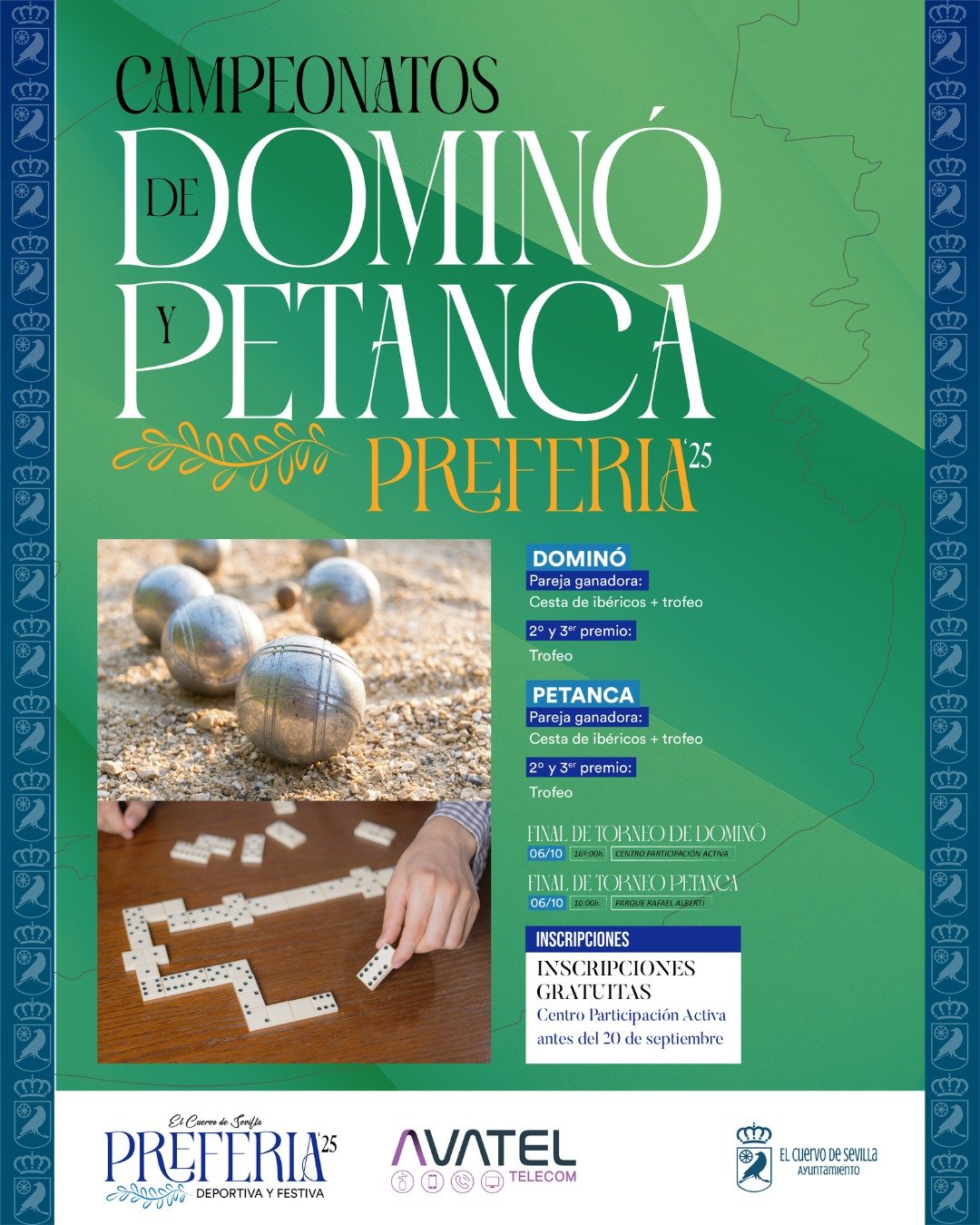 El Ayuntamiento de El Cuervo de Sevilla ha organizado los campeonatos de dominó y petanca en el marco de las actividades de Preferia 2025, con el objetivo de fomentar la participación ciudadana y la convivencia vecinal.