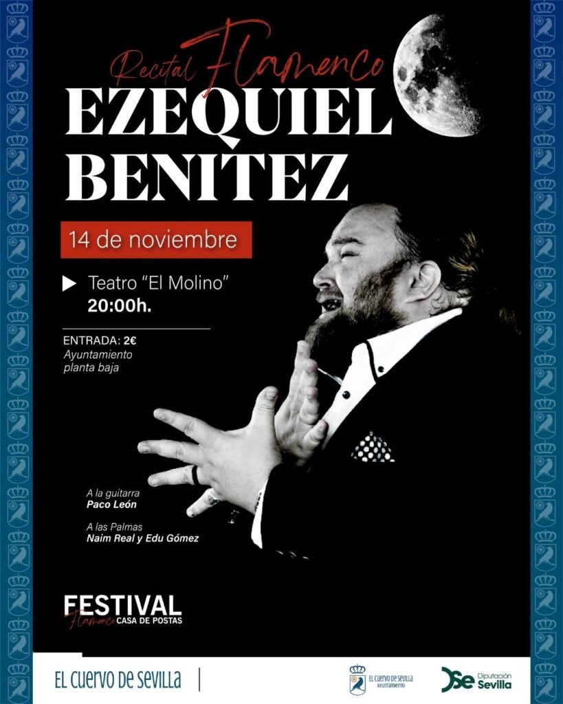 El 14 de noviembre se celebrará un recital flamenco a cargo de Ezequiel Benítez en el Teatro “El Molino”, con entrada a un precio simbólico de 2 euros. Al día siguiente, el mismo escenario acogerá las actuaciones de Luis Malena y el cuadro flamenco de Manuel Jiménez Montes, con entrada gratuita.