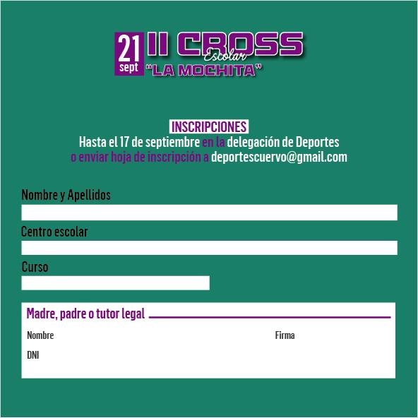 Las inscripciones permanecerán abiertas hasta el 17 de septiembre y podrán realizarse en la Delegación de Deportes o enviando la hoja de inscripción al correo deportescuervo@gmail.com. El formulario requiere la autorización de madre, padre o tutor legal.