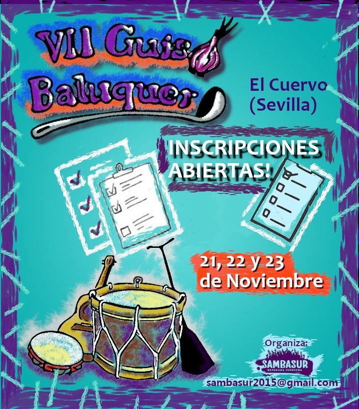 El municipio de El Cuervo de Sevilla acogerá del 21 al 23 de noviembre el VII Guiso Batuquero, un encuentro dedicado a la percusión brasileña que contará con la participación de Luz Pacheco y Jesús Medina como principales formadores.
