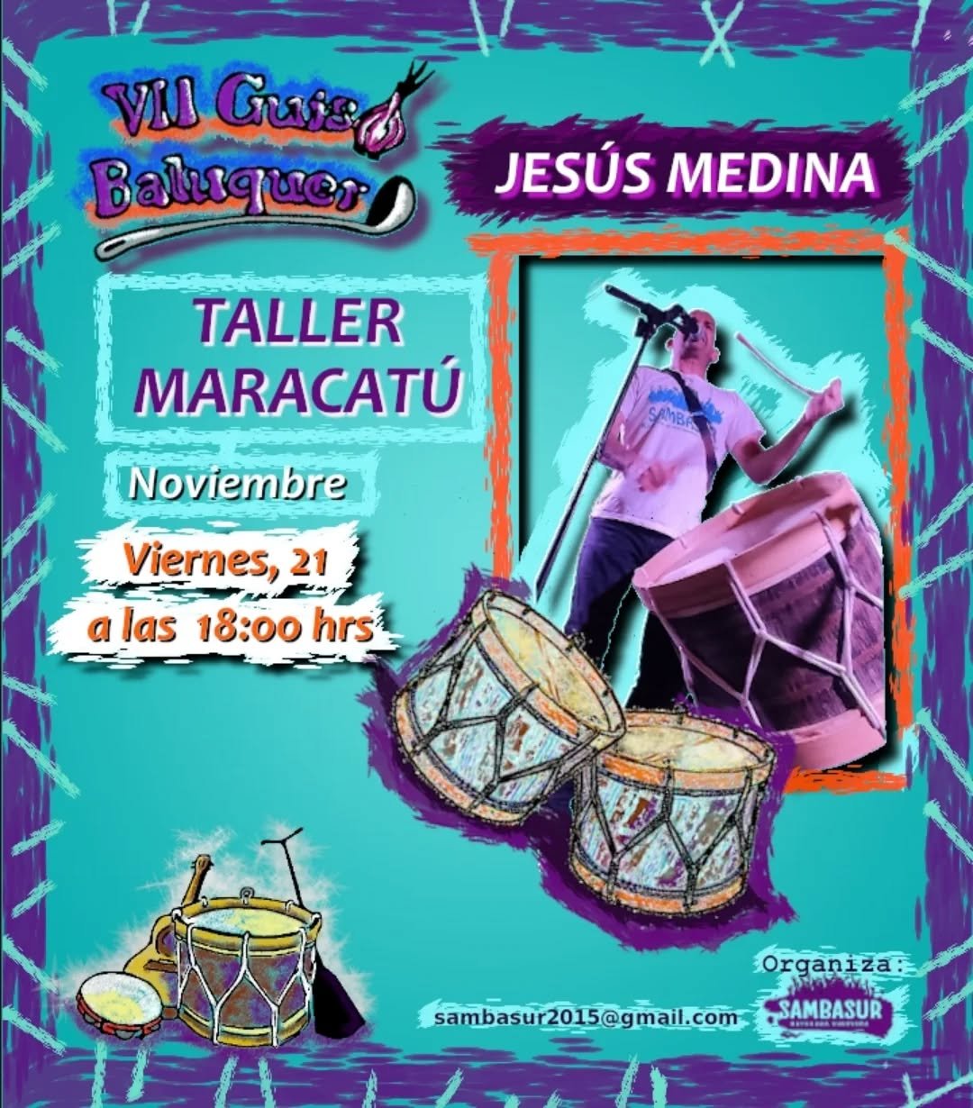 Entre los talleres programados destaca el de maracatú, a cargo de Jesús Medina, que tendrá lugar el viernes 21 de noviembre a las 18:00 horas. Este género, originario de Pernambuco (Brasil) y con más de dos siglos de historia, combina percusión, canto responsorial y cortejos festivos. Medina, percusionista con más de dos décadas de trayectoria, ha estudiado en Brasil con reconocidos mestres y participa en carnavales tradicionales.