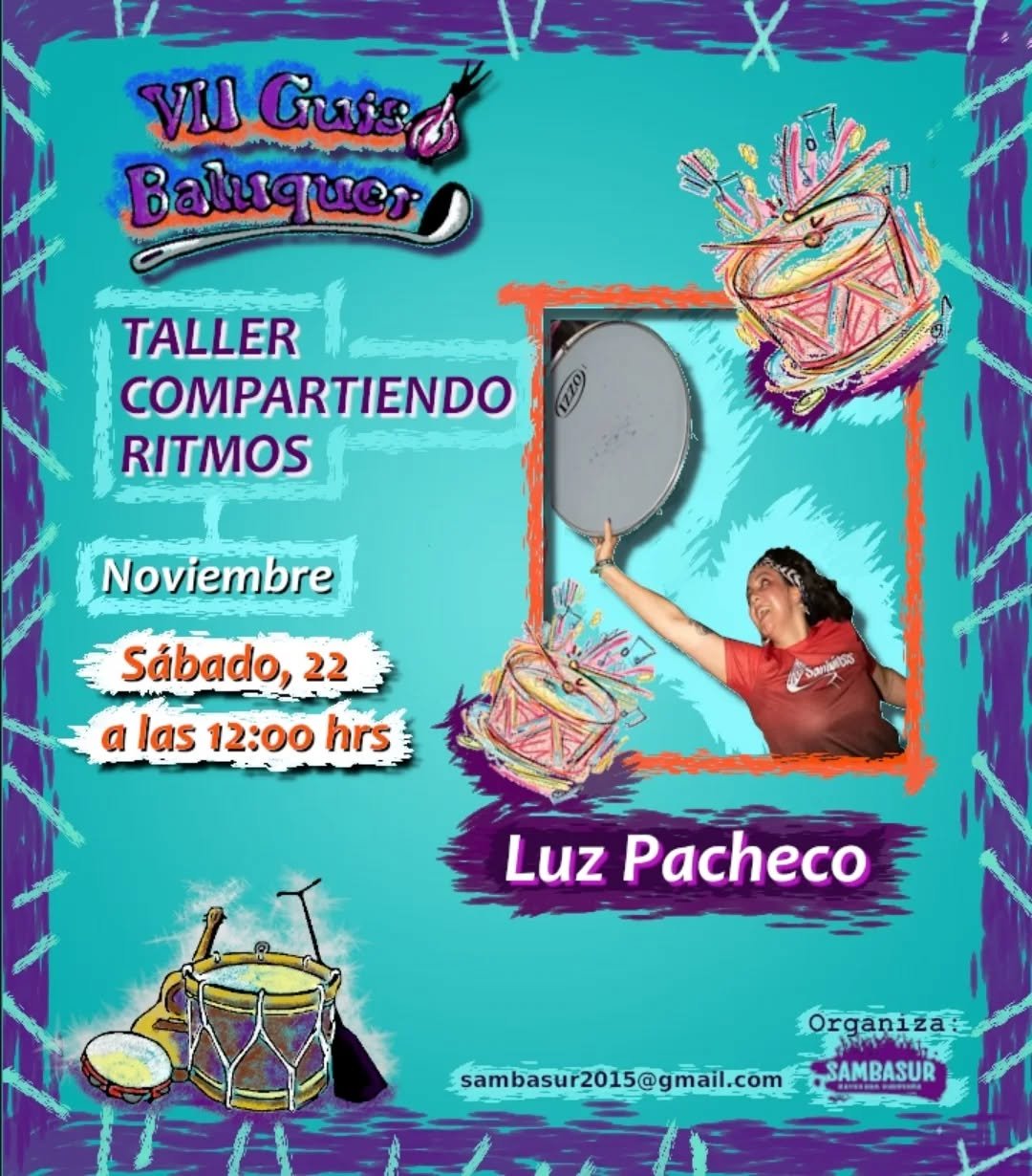 Por su parte, Luz Pacheco impartirá el taller Compartiendo ritmos, orientado a la percusión afro y la conexión colectiva a través del tambor. La artista cordobesa inició su formación a los 15 años y actualmente forma parte de la banda profesional Afro Rua, además de impartir clases en distintos colectivos musicales.