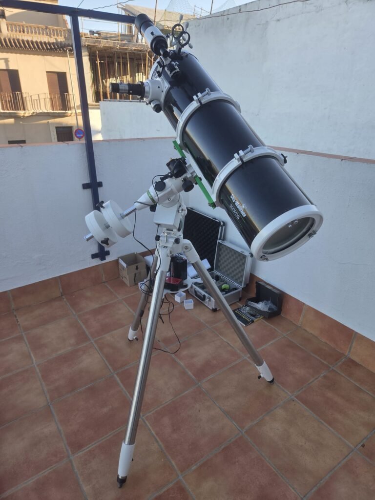 Ahora mismo tengo un telescopio reflector de 200mm con montura ecuatorial, es un buen telescopio para espacio profundo (nebulosa, galaxias, cúmulo estelares) aunque también es  bueno para planetas y la luna.  Me gusta mucho ver la reacción de alguien que mira con el telescopio por primera vez.