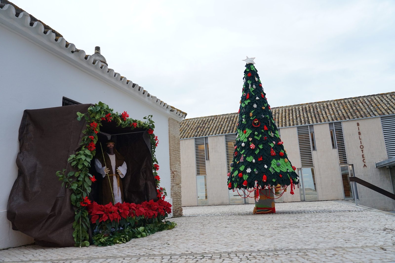 La Casa de Postas y la Plaza de la Constitución acogieron en la tarde de ayer la inauguración del belén de punto y crochet, junto al árbol de Navidad y otras decoraciones, con lo que quedó oficialmente iniciada la ambientación navideña en estos espacios representativos del municipio.